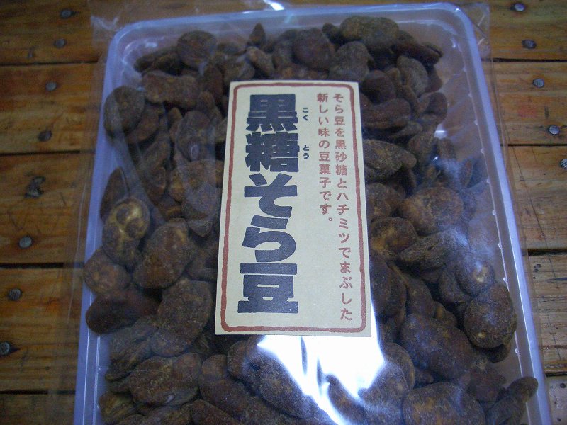 今日は、おもしろい物を紹介したいと思います。以前薫製玉子を紹介した帯広の前田英一商店(住所:帯広市西5条南17丁目14番地、TEL:0155-24-4831)で見つけた黒糖そら豆です。