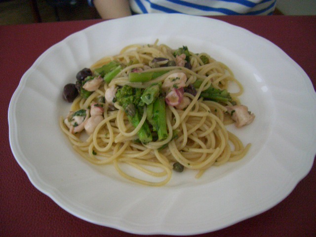 本日のパスタ(活蛸のプッタネスカ、ビアンカスパゲティー)があらわれた。