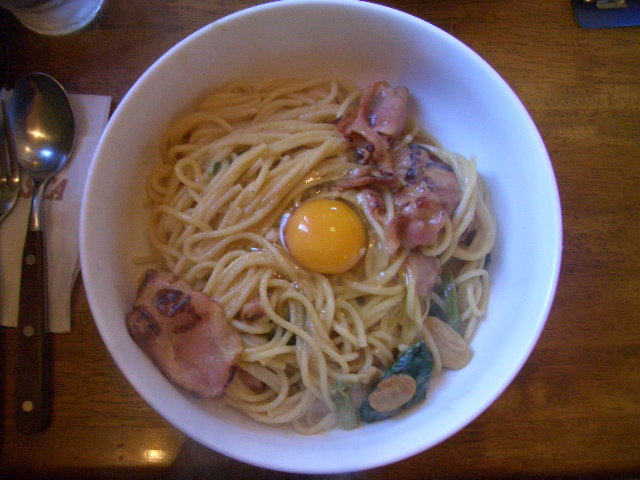 パスタオリジナルソース ベーコン(トッピング 生卵)(720円)があらわれた。