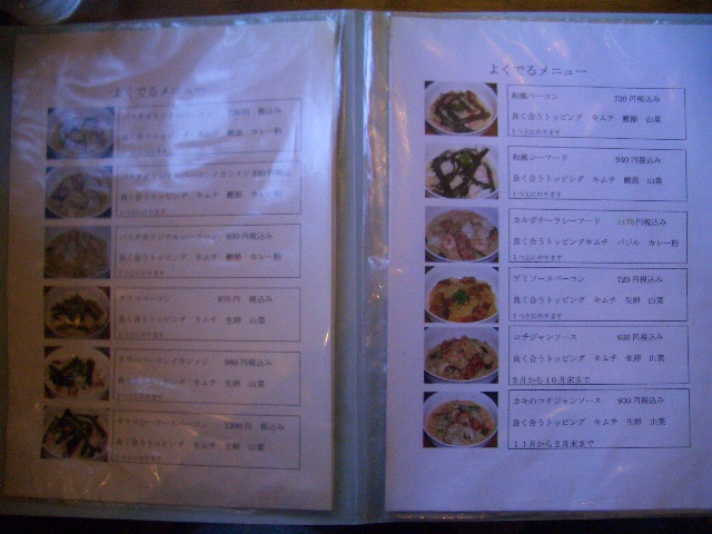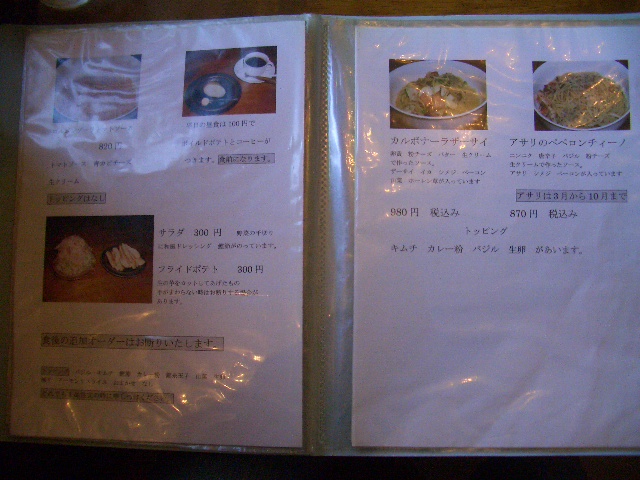 今日の旅は、帯広最後の昼食と言うことでパスタ(住所:帯広市西三条北1-16-3、TEL:0155-23-7755)です。イタリアンではなく、スパゲッティー屋さんです。いつも、混んでいて、今日も12時前に行きましたが、ほとんど満員状態でカウンターしか開いていなかったのですが、ご夫婦二人できているお客さんにテーブル席をゆずっていただきました。ありがとうござました。ありそうでない感じでとても好きなお店です。