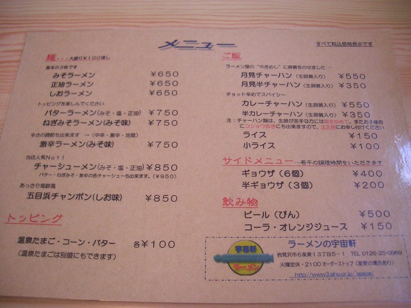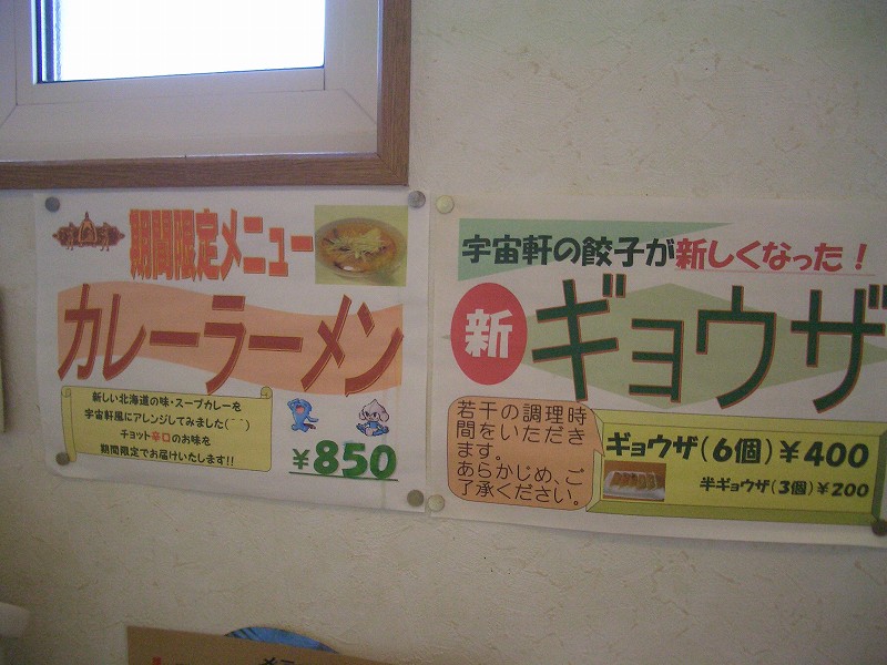 今日は、宇宙軒(住所:岩見沢市6条東13丁目5-1、TEL:0126-25-0969)に行きました。