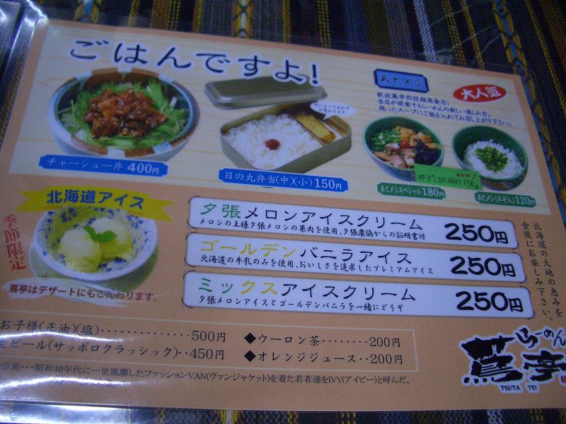 今日は、蔦亭(住所:旭川市北門町11丁目、TEL:0166-51-6860)に行きました。建物の雰囲気、店内にビートルズが流れいるし、雰囲気はいい感じです。
