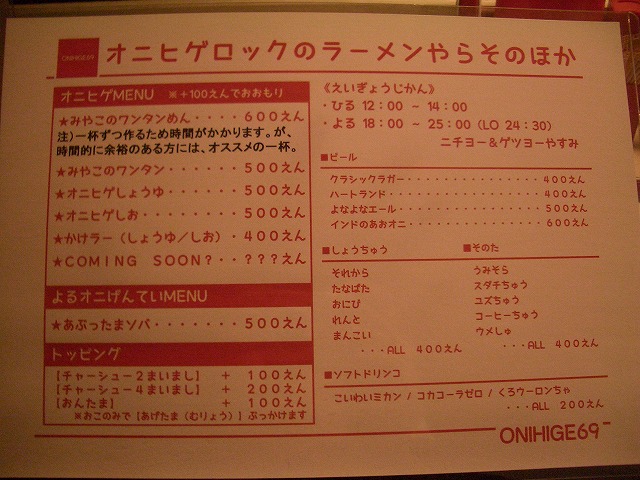 今日は、外回りの用事があったため、気になっていたオニヒゲロック(ONIHIGE69)(住所:札幌市中央区南2条東1丁目1-6 M'S二条横丁 1F、TEL:090-7796-2528)に足を運びました。