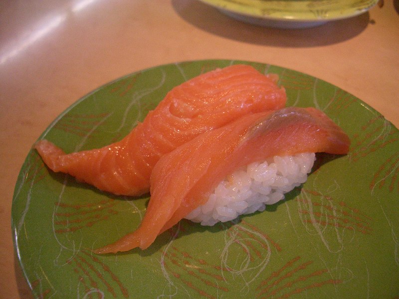 2サーモン(126円) 私が大好きなサーモンです。今食べるのであれば、上のいろどりづくしを頼んだ方がお得ですね。