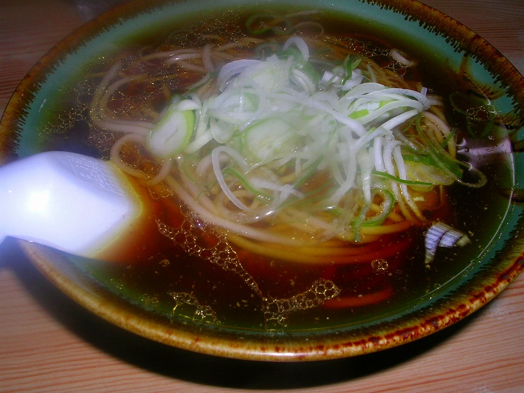FOODAD「しめは、そばです。そばは鳥のだし、油分が出ているスープで濃厚です。焼鳥屋ならでは、そば屋では食べられない濃厚なスープです。このスープを飲まないと三船に来たという感じがしません。おすすめです。」