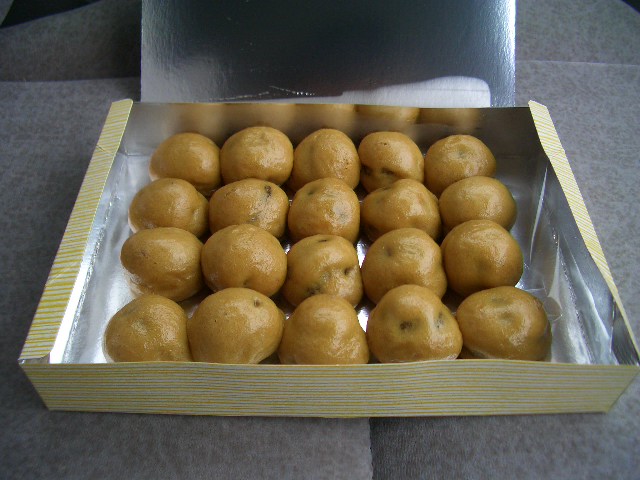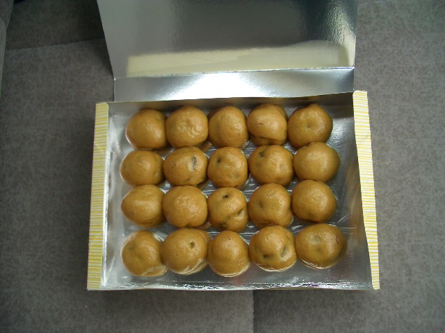 FOODAD「買った後、すぐ車で食べると蒸したてという感じでした。皮が薄いので、あんを食べているという感じです。あん好きにはたまらないでしょう。写真では、たこ焼きみたいにみえるけど、10円まんじゅうです。大きさは、串団子くらいでしょうか。個人的には、白あん、うぐいすあん、かぼちゃあん、ちょこあん(これは言い過ぎか)とか色んなあんを作ってくれると嬉しいです。アイデアがおもしろいですね。」