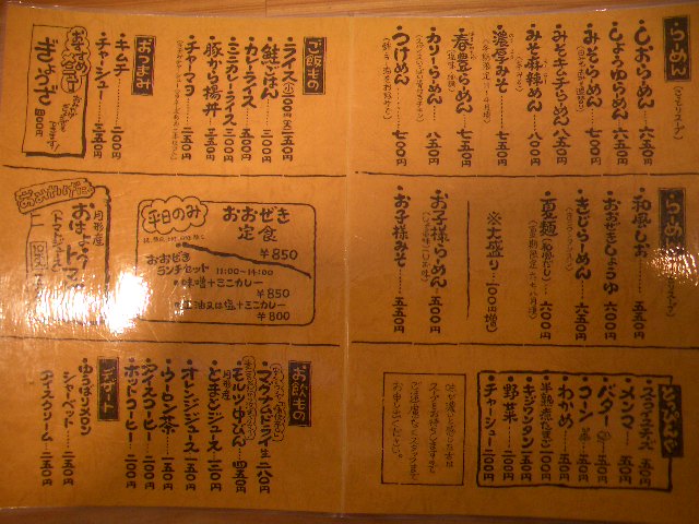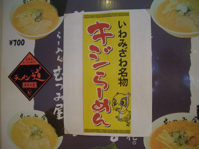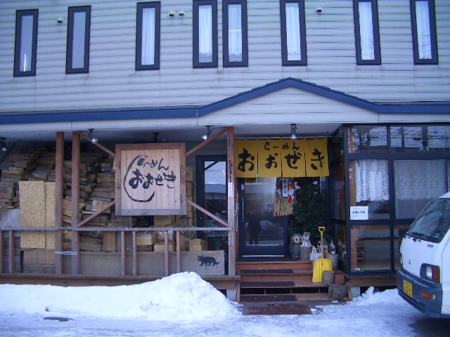 今日の旅は、キジラーメンで有名なおおぜき(住所:岩見沢市10条東6丁目、TEL:0126-23-3888)です。旭川方面から12号線を走り岩見沢の中間付近、左にあります。座敷が2個、テーブル席が6個位あり、広々とした印象です。入ってみるとむつみやの兄弟店だということがわかりました。