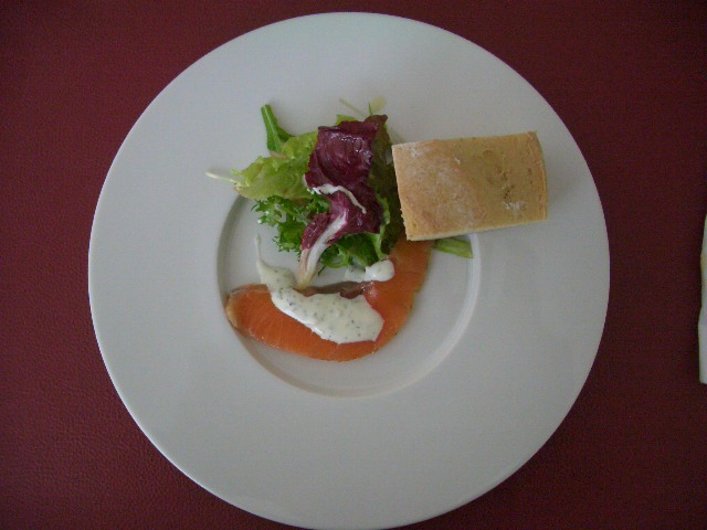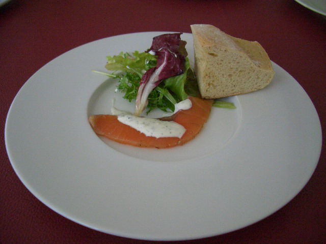 FOODAD「スモークサーモン、天然酵母のパン、サラダです。」