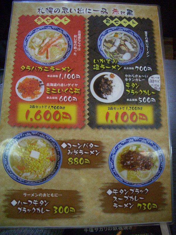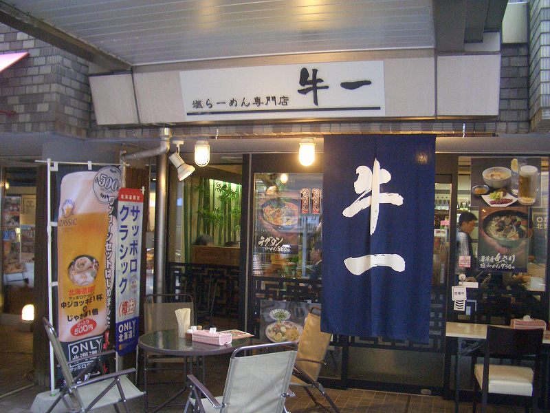 山嵐黒虎をねらっていましたが、諸事情により断念、徒歩でいける塩らーめん専門店 牛一(住所:札幌市中央区北1条西2丁目 時計台プラザB1F テラス側、電話:011-231-9091)に行きました。