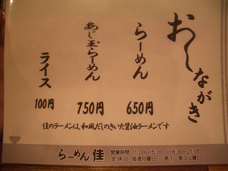 平日に外食ができるということになり、土・日になかなか行けない人気店に行こうと言うことになります。らーめん 佳(住所:札幌市豊平区月寒西1条7丁目8-19、電話:011-856-5632)に行きました。