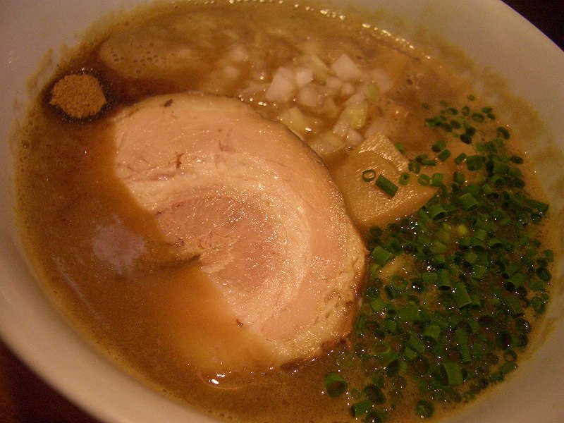 スープを一口。魚介の風味、ねっとりと口に広がるとろみ、豚骨のマイルド感。やっぱりおいしいです。現在の自分の中でナンバー1のラーメンかもしれません。