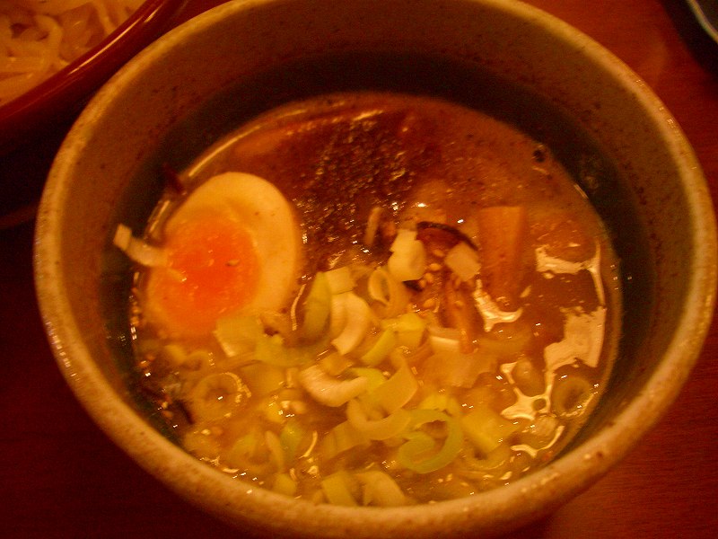 次は、下の方からかき混ぜて食べてみます。なるほど、旨みが増して美味しくなりましたが、くせのないライトな魚介系のつけ麺だと思います」