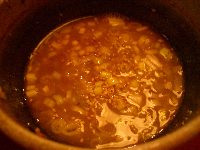 濃厚スープが、玉葱、青葱の味を心地よい物へと変化させます。」