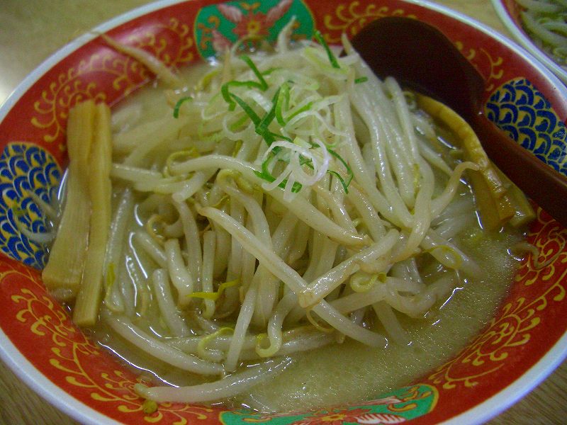 FOODAD「スープを一口飲むと、もやしを炒めた時のラードの香ばしい香りがします。出汁はおいしい感じがしますが、味噌だれが少し薄いような感じがしました。このラードの香ばしさと調和する、濃いめの味噌だれだと好みの感じかもしれません。