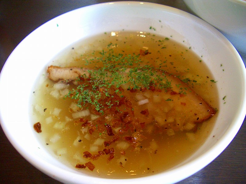 南印風とあるとおり、塩ベースのスープに香辛料が入った、ラーメンとは思えないスープです。コンソメのスープに香辛料がきいているような感じでしょうか。おいしいスープです。」