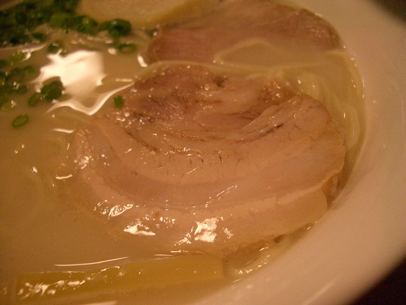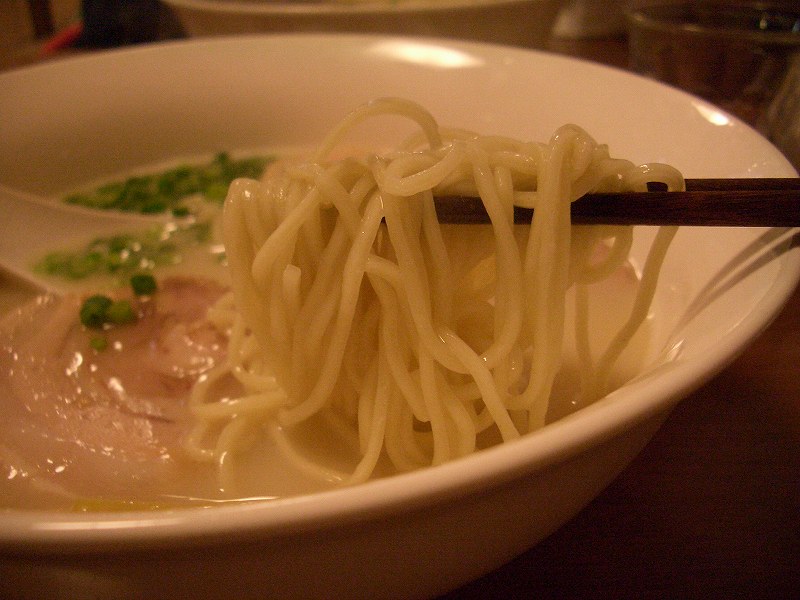 見た目は豚骨すーぷのような真っ白な色ですが、豚骨よりでクリーミーな感じです。香りはそれほど鶏を感じません。一口スープを飲んでみるとクリーミーで、いい塩加減です。少し鶏の臭みがあるように感じました。