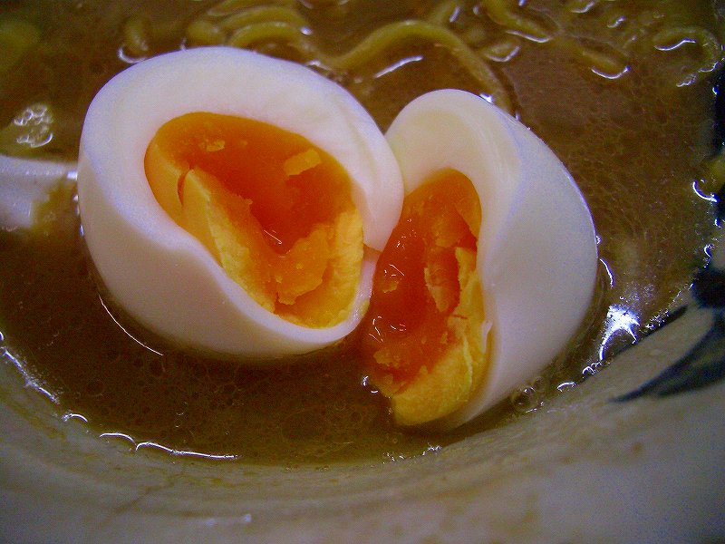 後半、サービスのゆで卵をラーメンの中に入れ食べました。」