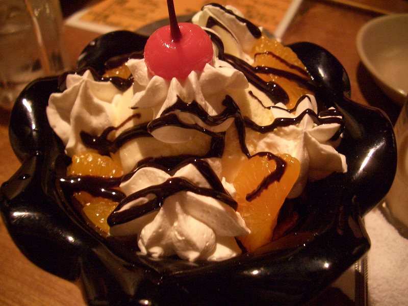 チョコプリンパフェは、だれが頼んだのでしょう。お酒を飲みながら甘い物とは、甘党の方が頼んだのでしょう。