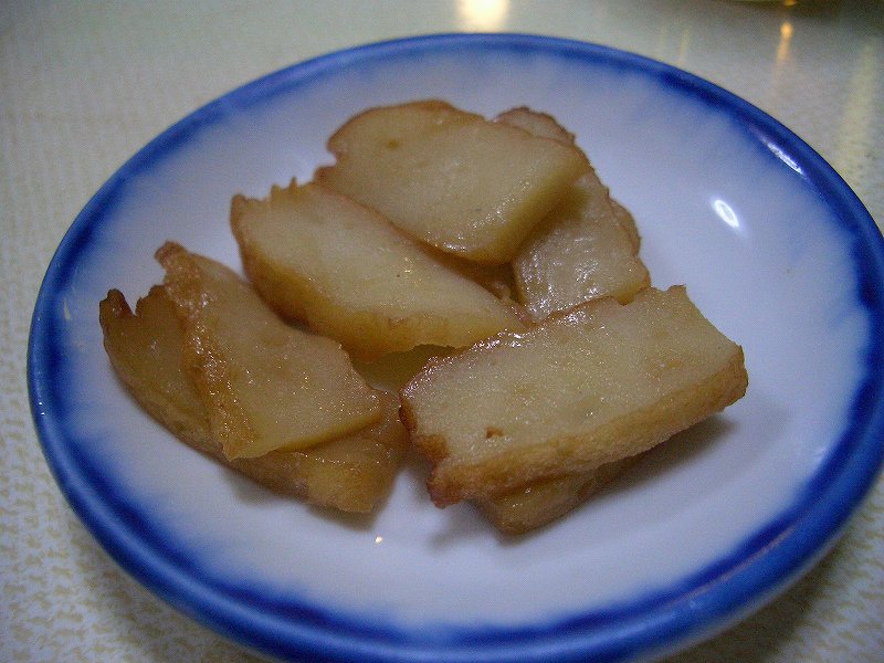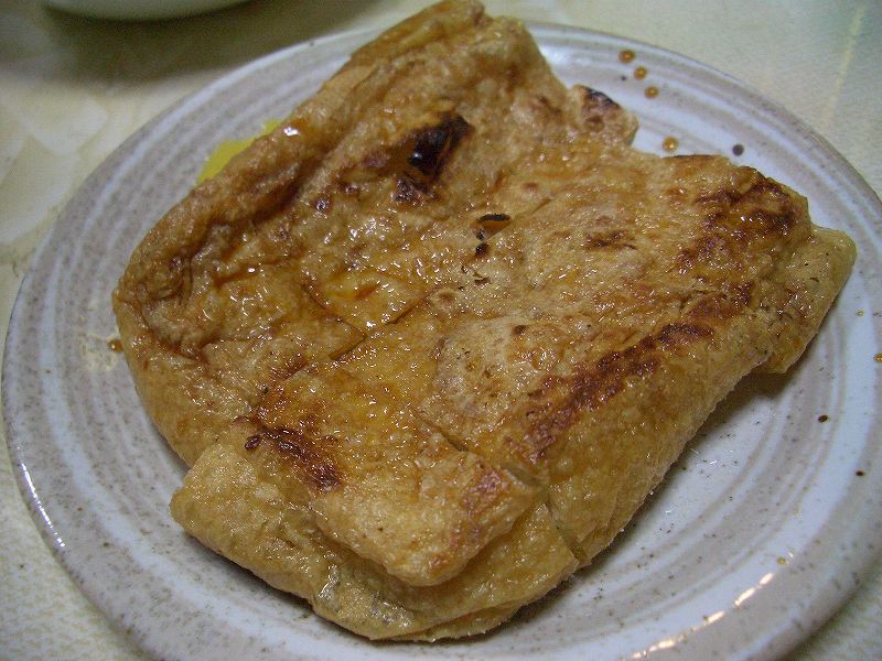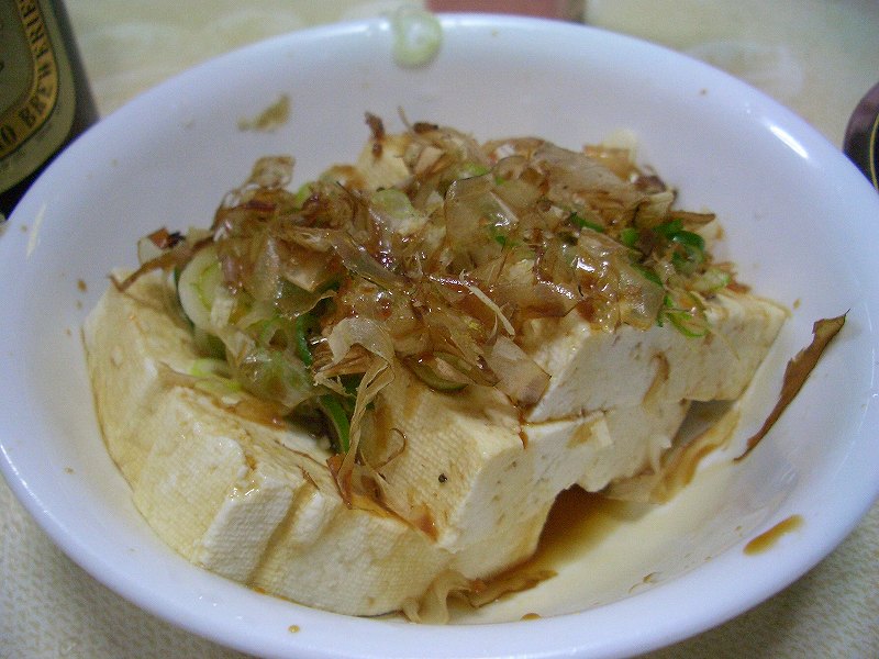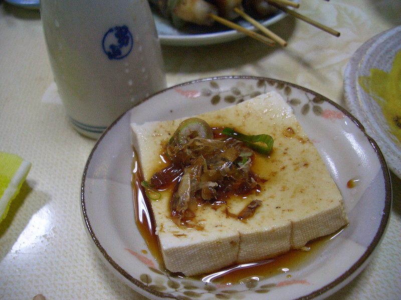 お通し(薩摩揚げ)、冷や奴(200円)、あげ(200円)、焼きイカ(300円)です。