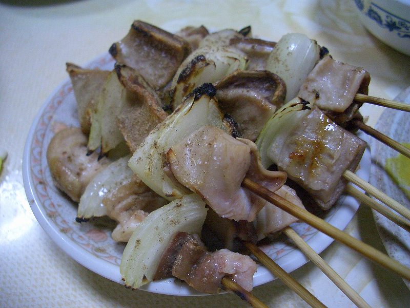 タンが出てきて、私が写真を撮る前に、チーズさんはなにげに一串を食べようとしました。これにはみんな唖然。自分がカメラを持ってきている時には、写真におさめる前に、手をつけようものなら、鬼の形相で制止するチーズさんが、自分がカメラを持ってきていない時には、我先に手を出そうとしました。チーズさん自身も自分の行動にびっくりしていたようで、大爆笑させてもらいました。」