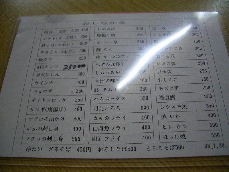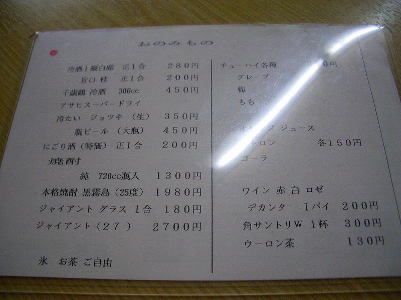 前回来たときは、日本酒や焼酎も100円でしたが、少し値上がりしていました。