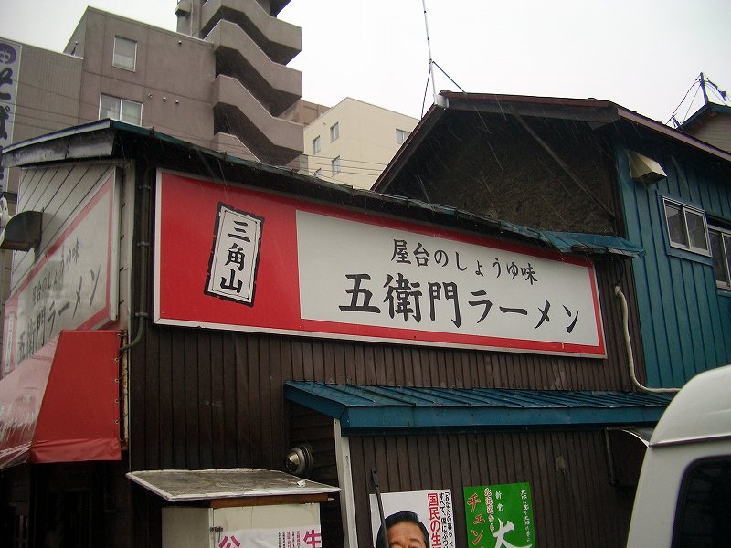 今日も雨がひどく降っている中、外回りです。何年か前に雑誌で見て気になっていた三角山五衛門ラーメン(住所:札幌市中央区南2条西9丁目 狸小路9東カド、TEL:011-261-9701)に行きました。