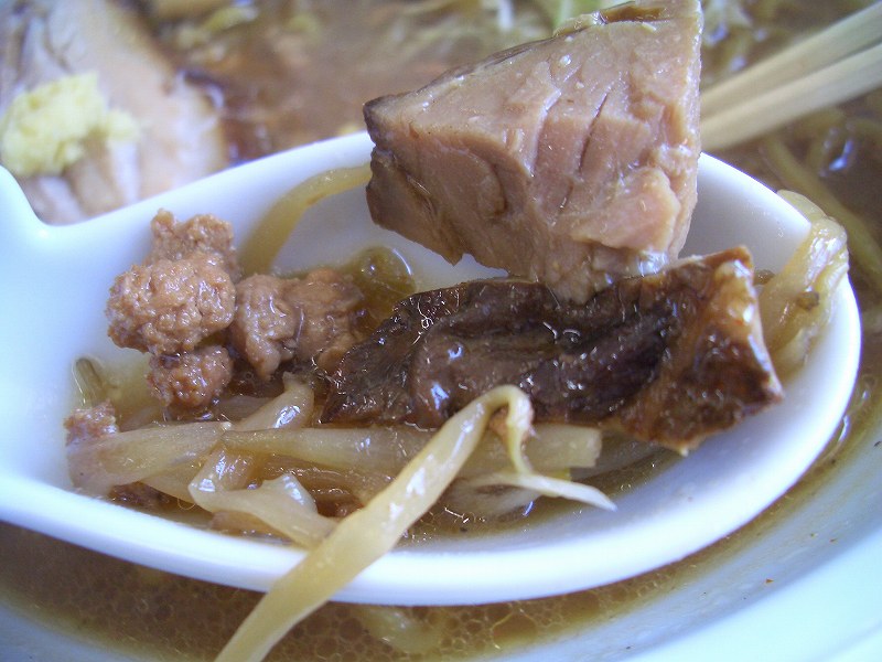 純すみ系と聞いていましたが、それとは、若干違うような気がしました。表面の脂は少なく、そのためスープは熱々ではなかったです。にんにくや山椒などの香辛料はあまり感じられず、赤みそだと思われる味が強いような気がしました。そのせいで、独特なスープに仕上がっていると思います。」