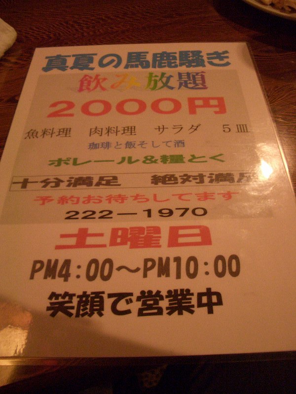 どれも普通の味ですが、9品も出て、飲み放題なので、どこで利益を出しているのか全くわかりません。