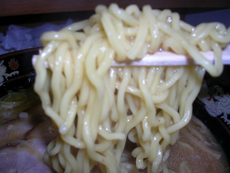 まず、スープを一口飲むと赤みそのせいなのか、辛さがあります。とんこつスープとなっていますが、結構魚系の出汁がきいた、独特なスープです。」