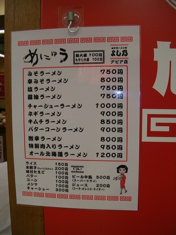 今日は、よし乃 アピア店(住所:札幌市中央区北5条西3・4丁目アピア内、TEL:011-209-3536)に行きました。結局、5日連続ランチにラーメンを食べてしまいました。