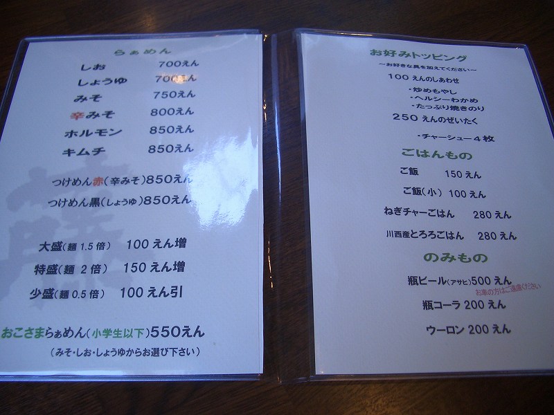 しおらぁめん(大盛)(700円+100円)があらわれた。