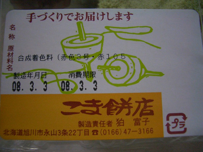 今日は、ひな祭りなのでさくら餅を買いにこま餅店(住所:旭川市永山3条22丁目3-1、TEL:0166-47-9521)に行きました。