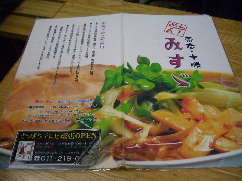 今日は、友達の家に遊びに行く途中に、みすゞ(住所:帯広市西2条8丁目20番地、TEL:0155-23-4706)に行きました。