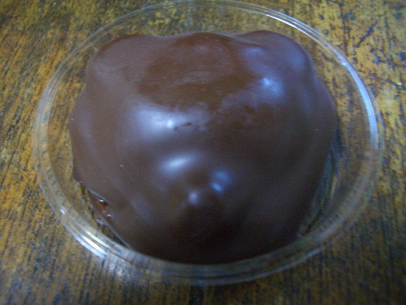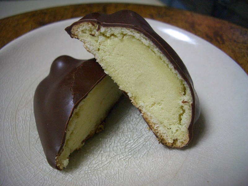 半分に切ってみました。外側のチョコと中のしっとりしたあんがとてもおいしいです。」