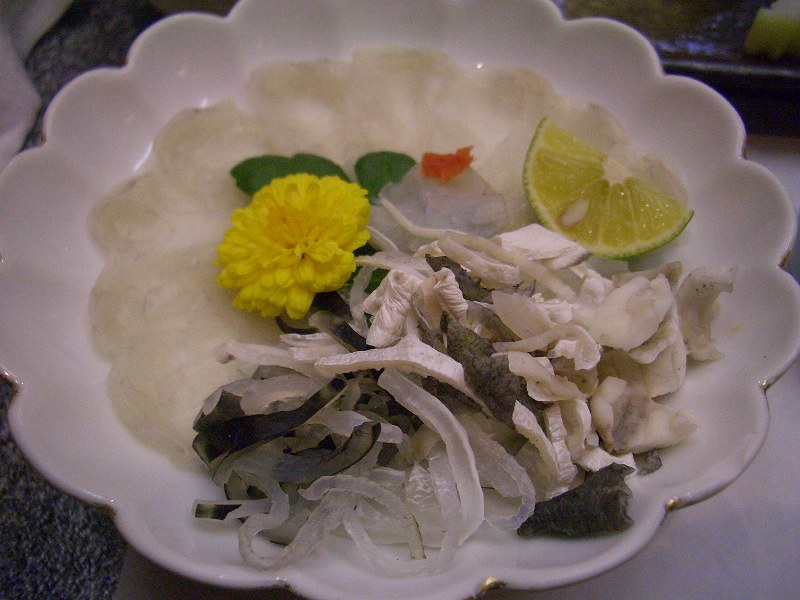 ふぐの皮が入った煮こごりがおいしかったです。もう2,3個食べたい感じです。」