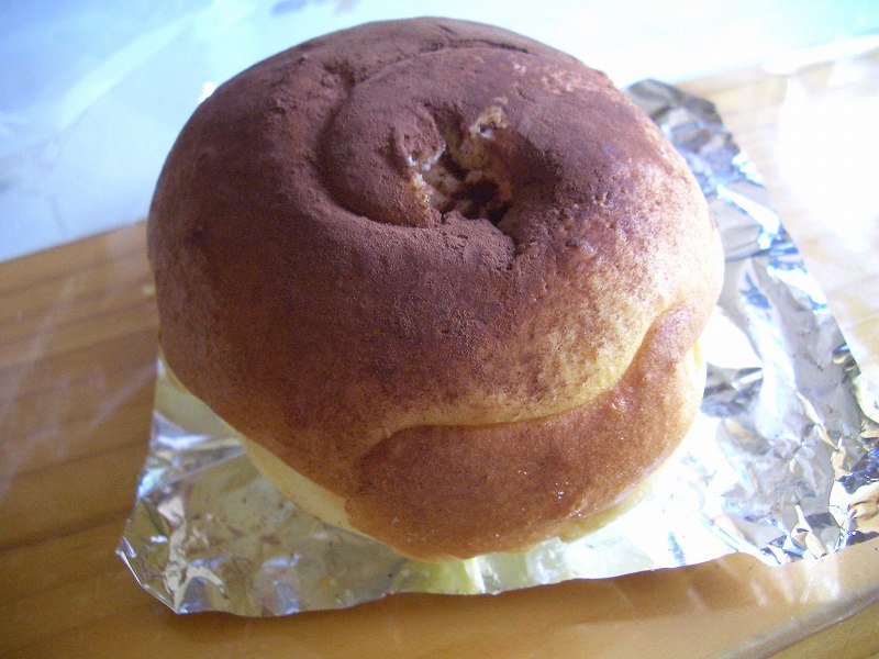 ティラミス風に作られたパンで、表面にココアパウダー、中はクリームと、下の方にコーヒーがしみたような感じになっています。おいしかったです。」
