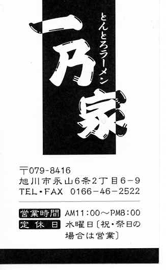 今日は、一乃家(住所:旭川市永山6条2丁目、TEL:0166-46-2252)に行きました。個人的には、市内トップレベルのラーメンを提供するお店だと思っています。