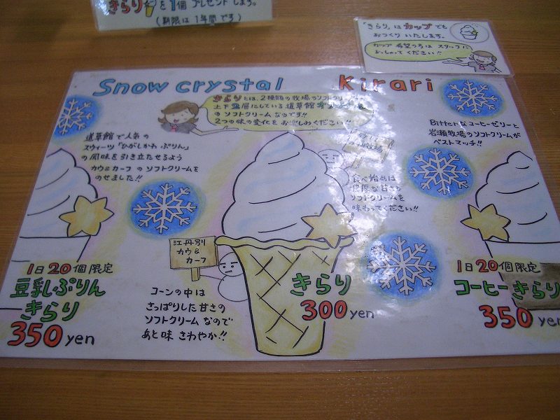 味は、上が濃厚、甘めのクリーム系で砂川の岩瀬牧場のソフトクリームだそうです。(岩瀬牧場はジェラートもおいしいですよ。)