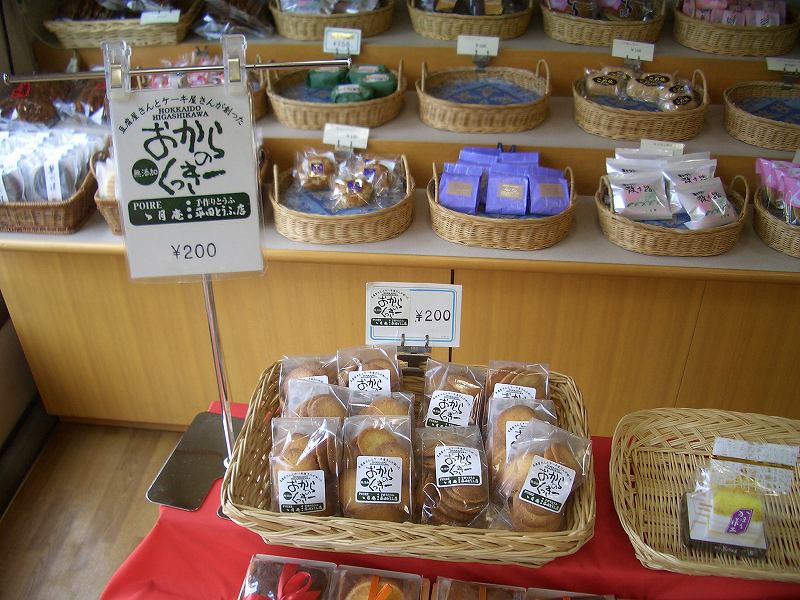 ホールでは、豆腐、味噌、パン、木工品など町内の名産品がありました。