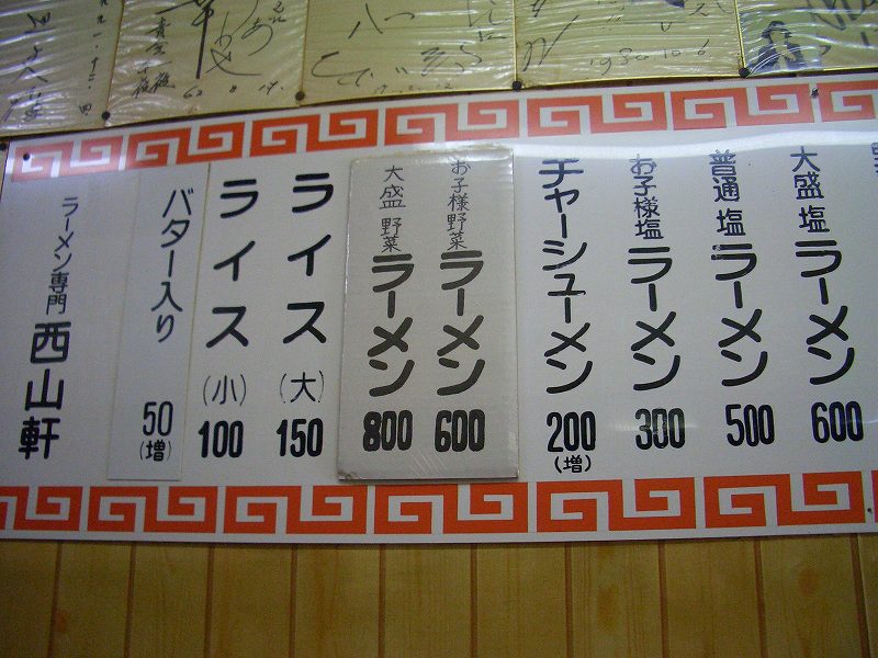 今日は、西山軒(住所:旭川市7条通8丁目、TEL:0166-22-1357)に行きました。買物公園にあるラーメン屋です。店内には、沢山芸能人の色紙が飾ってありました。