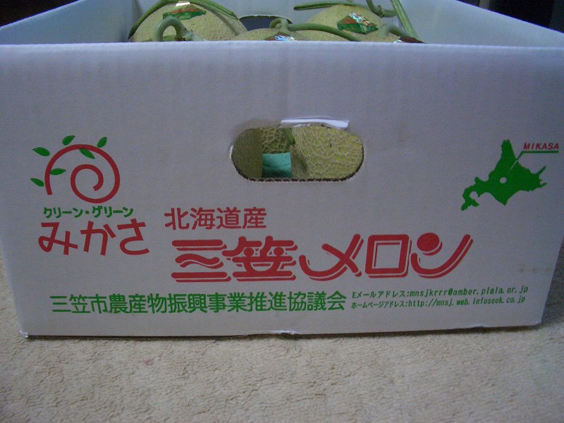 FOODAD「箱を開けなくてもメロンの良い香りがします。5玉入りです。三笠市農産物振興事業推進協議会は、ホームページもあるようです。」