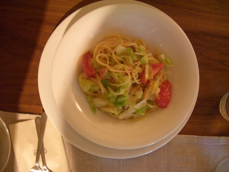 キャベツはシャキシャキで甘みがあり、それとは対照的にアンチョビの塩分がきいていておいしかったわ。」