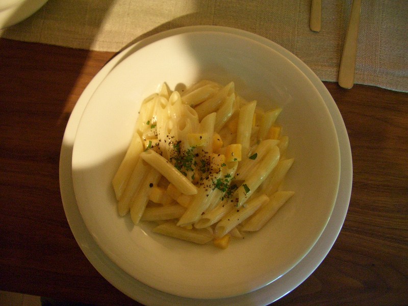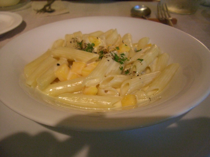 ペンネ(四種類のチーズソース マンゴ入り)があらわれた。