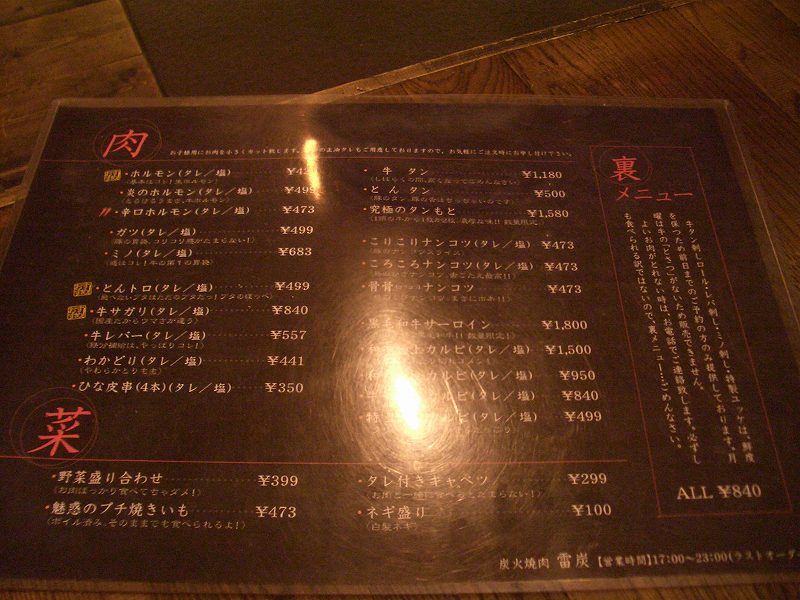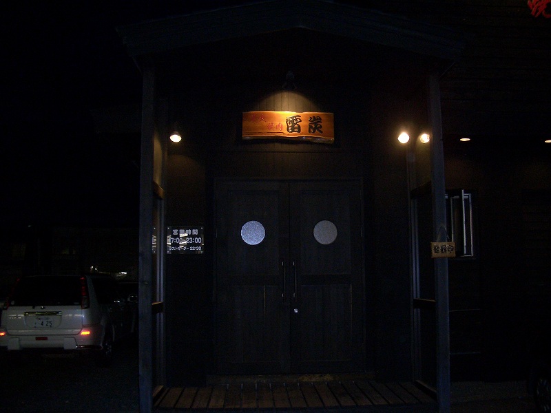 今日は、雷炭(住所:旭川市永山3条16丁目、TEL:0166-46-5578)に行きました。真っ黒な建物で入りにくい雰囲気ですが、おいしいという情報も入手しており、ちょっと期待してしまいます。