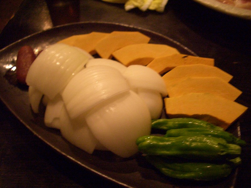 4野菜盛り合わせ 肉だけでは体に良くないので野菜もたのみました。左側に写っているソーセージみたいな物は、スイートポテトみたいなものでした。これも珍しいですね。」