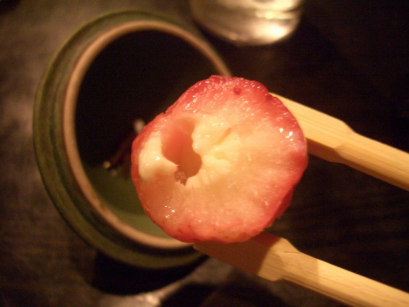 イチゴの中に練乳を入れ、凍らせています。とても冷たくて歯にしみます。」