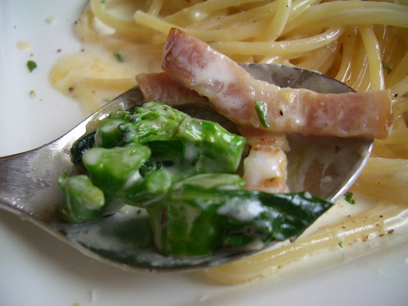 ここのスパゲティー、今まで食べたスパゲティーの中で、相当おいしいと思いました。」