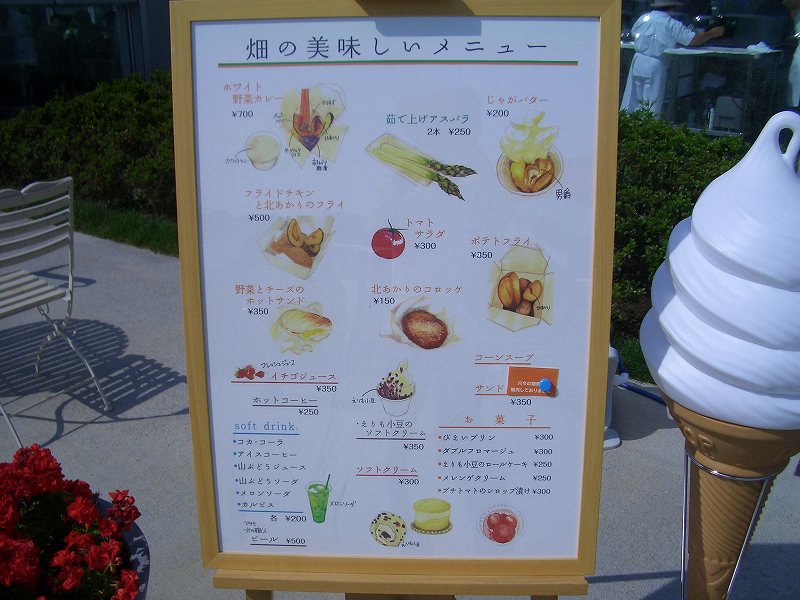 『7月8日(日)。オステリア・バローレでの昼食を終え、おいしい野菜とソフトクリームを求め美瑛市街に向かいました。』