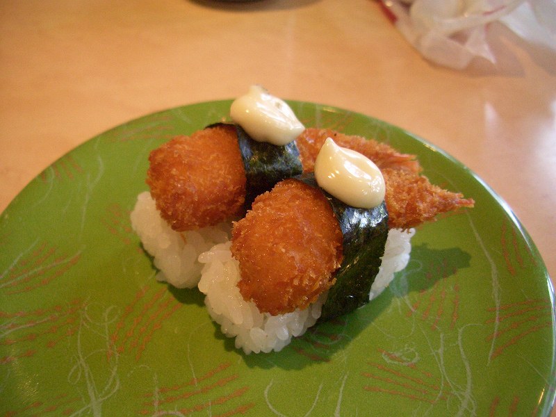 6ミニえびフライ寿司(126円) 殻がついたまま揚げてありました。殻はとらないと子どもは食べにくいと思います。