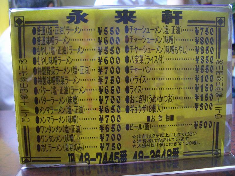 今日は、永来軒(住所:旭川市永山4条12丁目、TEL:0166-48-7445)に行きました。昼食時だったので、サラリーマンでほぼ満席状態でした。人気店なんですね。